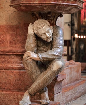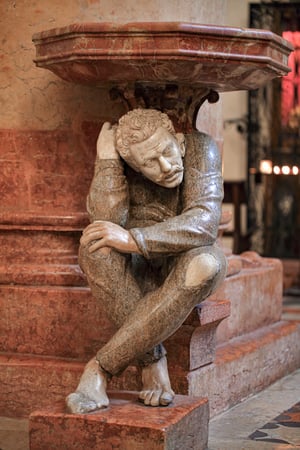 Le due statue poste all’ingresso, raffiguranti figure ricurve che sorreggono le acquasantiere, sono tra i dettagli più fotografati della chiesa.