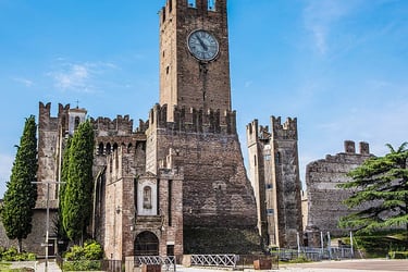 Il Castello Scaligero di Villafranca è una delle principali testimonianze dell’epoca scaligera nella pianura veronese. Costruito nel XIII secolo come parte del sistema difensivo a protezione dei confini, conserva ancora tratti delle mura merlate e delle torri. Inserito nel tessuto urbano di Villafranca, racconta la storia militare del territorio e rappresenta un importante punto di riferimento storico e culturale della città.