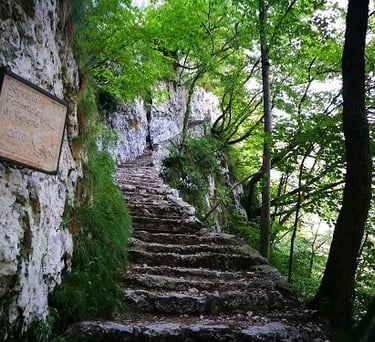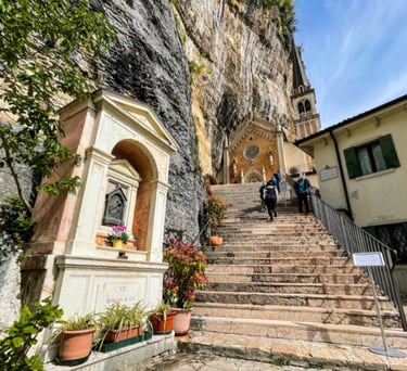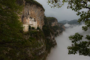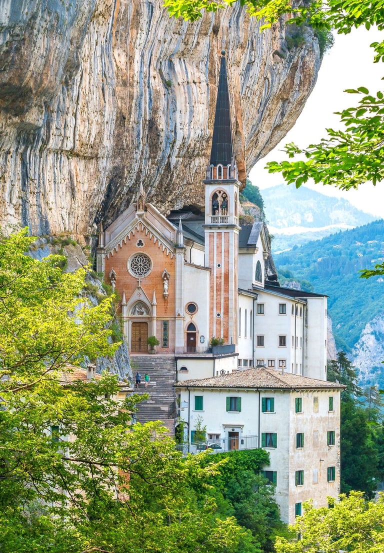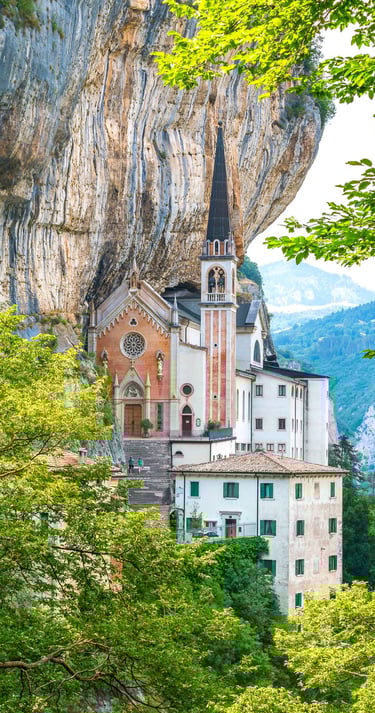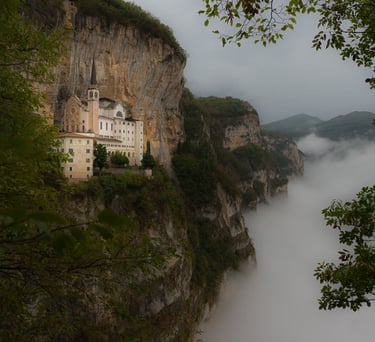 Il Santuario della Madonna della Corona è uno dei luoghi più suggestivi e spirituali del Veneto, incastonato a strapiombo nella roccia del Monte Baldo. Raggiungibile tramite un panoramico percorso pedonale, sembra sospeso tra cielo e valle dell’Adige. Meta di pellegrinaggio e contemplazione, affascina per la sua posizione unica e per l’atmosfera di profondo silenzio e raccoglimento.