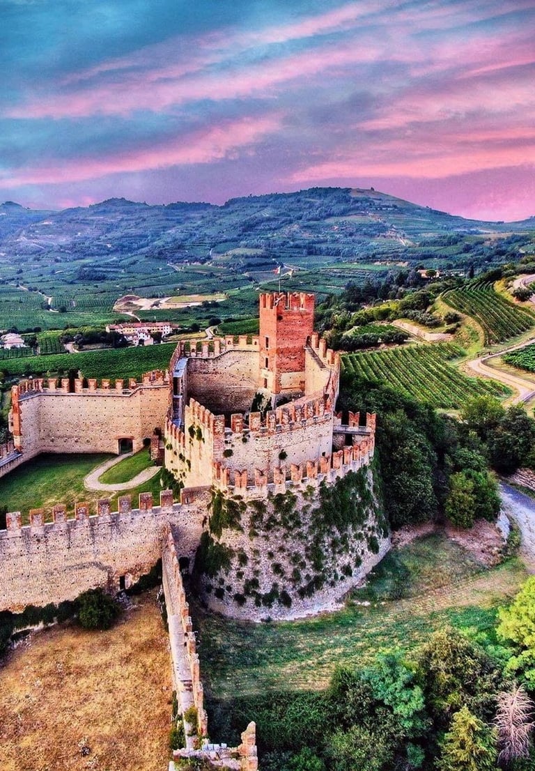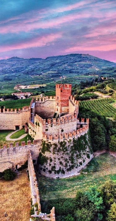 Il Castello di Soave domina l’omonimo borgo medievale ed è uno dei castelli meglio conservati del Veneto. Di origine altomedievale e ampliato dagli Scaligeri tra XIII e XIV secolo, è circondato da imponenti mura merlate e torri difensive. Dalla sommità regala una vista spettacolare sui vigneti del Soave e sulla pianura veronese, unendo storia, architettura e paesaggio.