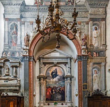Tra le opere più importanti spicca l’Assunzione della Vergine di Tiziano, che impreziosisce l’altare maggiore con la sua luce intensa e i colori vibranti.