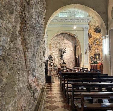 Le origini del santuario risalgono al Medioevo, quando gli eremiti si ritiravano in queste grotte naturali per vivere in preghiera e isolamento.