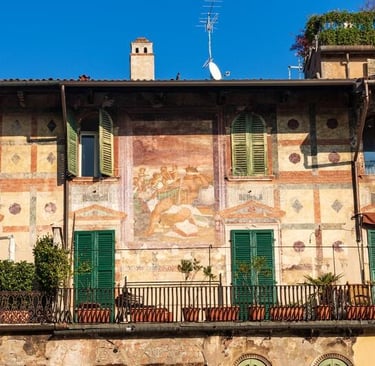 Gli affreschi rinascimentali della Case Mazzanti colorano la piazza e raccontano l’eleganza del periodo scaligero.