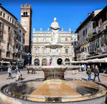 Al centro della piazza si trova la fontana con la statua della Madonna Verona, simbolo storico della città fin dal XIV secolo.